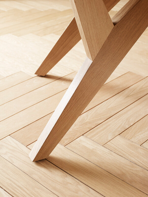 Sous un plateau fixe en bois massif, les pieds en Y à angle central de la table à manger Yarrow créent une silhouette moderne et dynamique qui s'adapte à votre point de vue. Le chêne blanc massif, avec son veinage linéaire, confère à cette pièce un aspect naturel et décontracté, tout en s'adaptant à tous les styles de pièces.